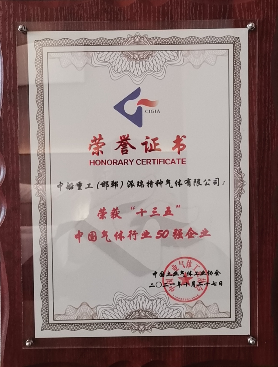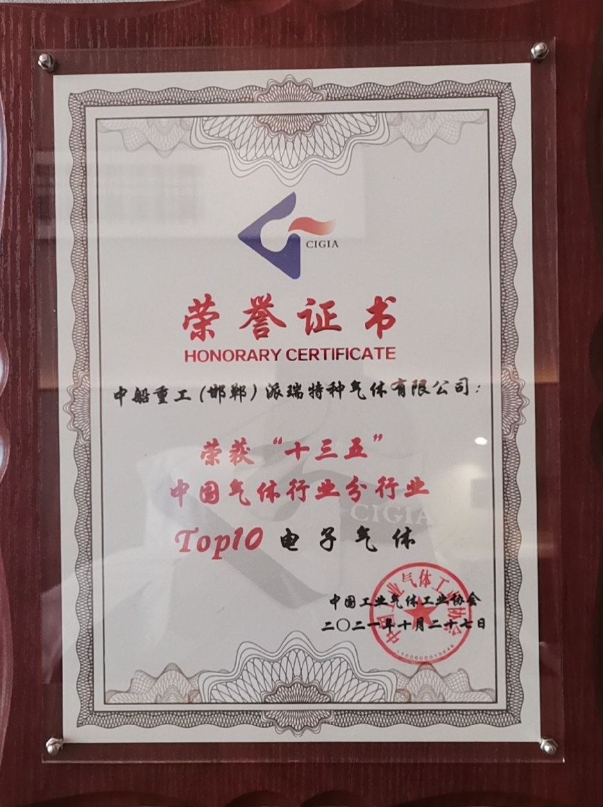中國船舶集團旗下七一八所所屬派瑞特氣公司,近日榮獲中國工業氣體工業協會評選的“十三五”中國氣體行業分行業電子氣體10強、“十三五”中國氣體行業50強企業榮譽稱號,以及2021年氣體行業專利獎金獎。
