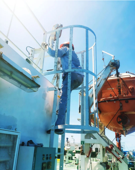 三伏天的太陽把船舶甲板曬得滾燙,鋼板溫度近70度,在甲板上工作的員工無法躲避強(qiáng)光與熱浪,只能如此進(jìn)行物理降溫。
