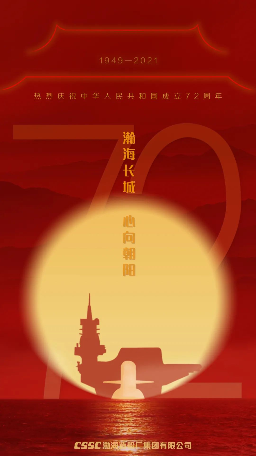 今天,我們迎來新中國72周年華誕。作為我國海軍裝備建設的主力軍,中國船舶大船集團將不忘初心,牢記使命,堅定貫徹海洋強國、制造強國、科技強國國家戰略,聚焦主責主業、聚力興裝強軍,為實現中華民族偉大復興的中國夢而不懈奮斗。