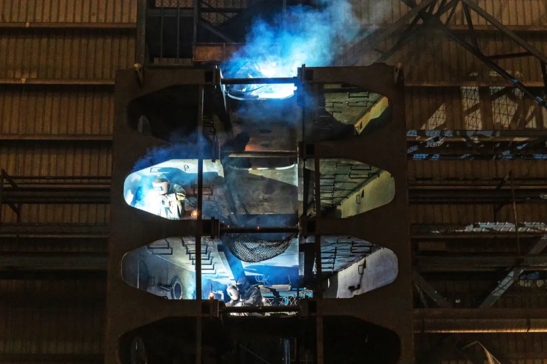大船集團全體干部職工統(tǒng)一思想,凝心聚力,堅守本職擔當,積極主動作為,爭分奪秒,奮力沖刺。其中FPSO-8項目是大船集團建造的第七艘FPSO。今年以來,FPSO-8項目提前計劃節(jié)點,順利實現鋪底,并完成了連續(xù)六個總段的塢內合攏。