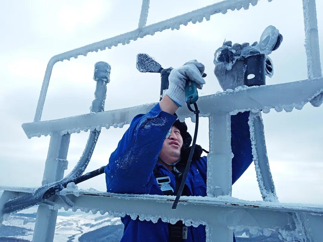 在遼寧昌圖天橋山項目,面對大雪降溫天氣,全體員工為保障風電機組安全正常運行,合力推車前往機位搶修。為恢復機組正常運行,運維人員人工給風速風向儀除冰。風雪之中,總有人穿風沐雪,在逆行在奮戰(zhàn),他們浴“雪”奮戰(zhàn),卻說高處能勝寒。