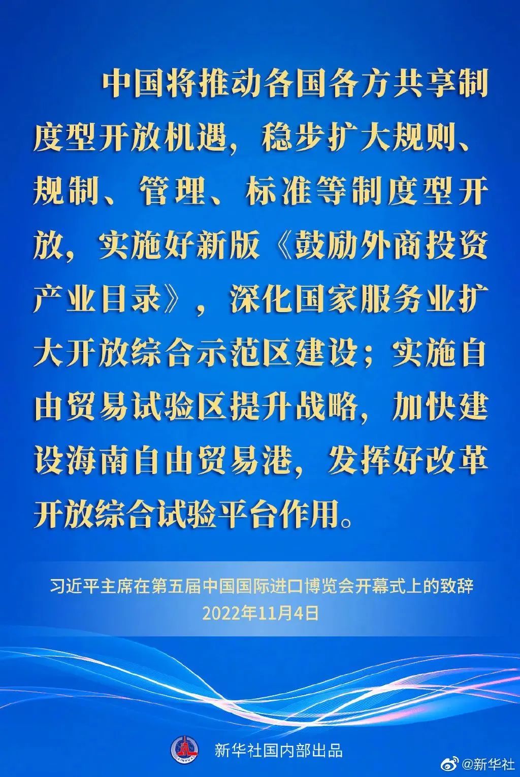 ——中國(guó)將推動(dòng)各國(guó)各方共享制度型開(kāi)放機(jī)遇,穩(wěn)步擴(kuò)大規(guī)則、規(guī)制、管理、標(biāo)準(zhǔn)等制度型開(kāi)放,實(shí)施好新版《鼓勵(lì)外商投資產(chǎn)業(yè)目錄》,深化國(guó)家服務(wù)業(yè)擴(kuò)大開(kāi)放綜合示范區(qū)建設(shè);實(shí)施自由貿(mào)易試驗(yàn)區(qū)提升戰(zhàn)略,加快建設(shè)海南自由貿(mào)易港,發(fā)揮好改革開(kāi)放綜合試驗(yàn)平臺(tái)作用。