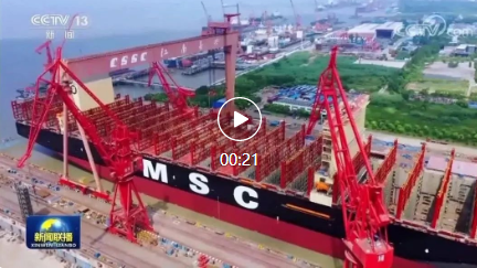 中國制造全球最大級別集裝箱船新紀錄在上海誕生。中國船舶集團旗下滬東中華聯合中船貿易為地中海航運公司(MSC)建造的24116TEU超大型集裝箱船系列船首制船“地中海 泰薩”(MSC TESSA)號,于3月9日命名交付。