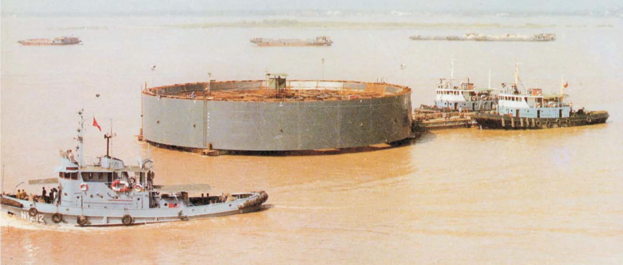 1984年廣州,黃埔文沖率先進軍國際海洋工程市場,1984年交付的“華海一號”是當時國內建造的最大的鉆井平臺。