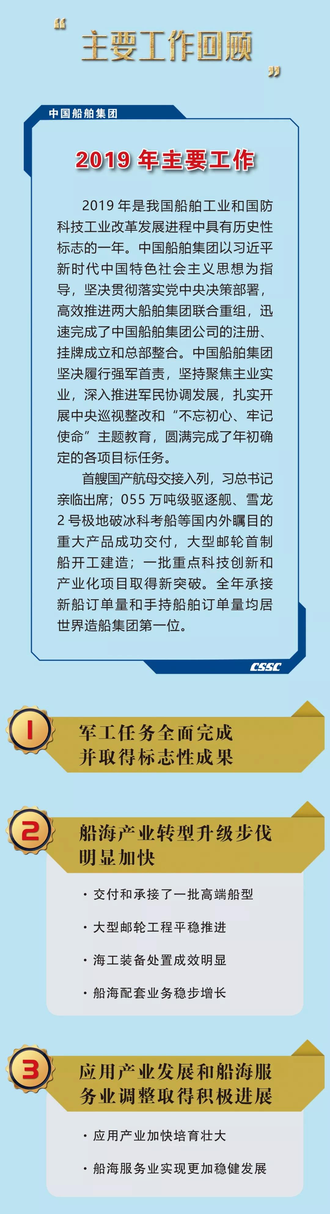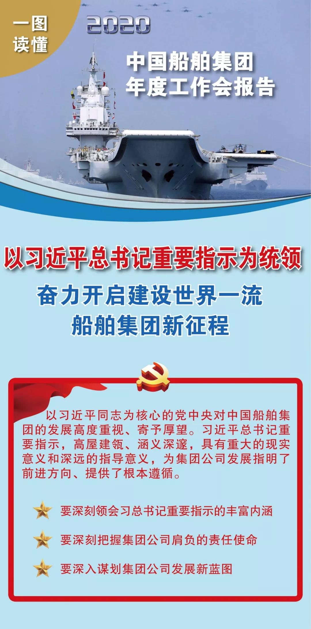 ??1月19日,在中國船舶集團有限公司2020年度工作會議上,中國船舶集團黨組書記、董事長雷凡培作了題為《以習近平總書記重要指示為統(tǒng)領(lǐng) 奮力開啟建設(shè)世界一流船舶集團新征程》的工作報告。
