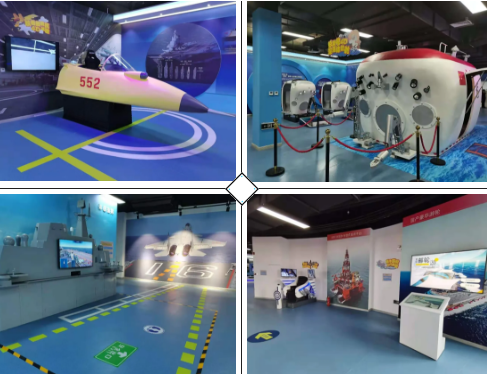 整個展館內分布著護航體驗區、VR綜合體驗區、航母艦室漫游體驗區、近海VR鉆井平臺體驗區、艦載機起飛體感指揮體驗區、航母艦載機空體驗區等,可以讓參觀者模擬駕駛我國船海重器,親身感受搏浪滄海、護衛海疆的震撼與自豪,使得船舶館成為海洋特色鮮明、模型館藏豐富、互動體驗感強的軍事科普教育展館和軍事文化娛樂園區。