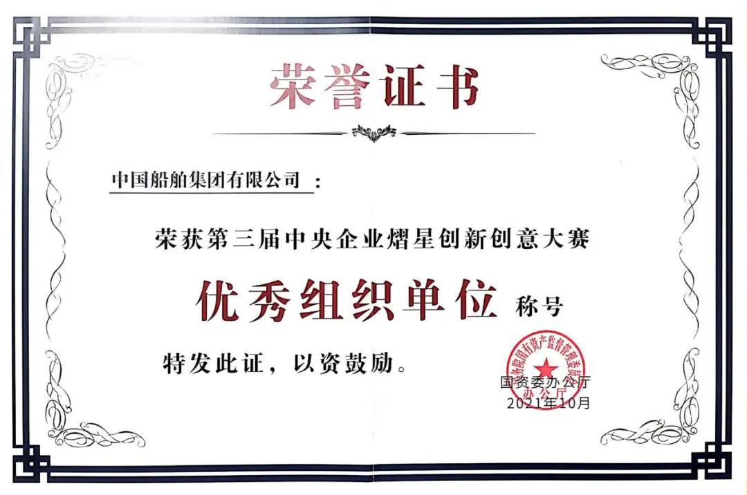 10月25日,第三屆中央企業(yè)熠星創(chuàng)新創(chuàng)意大賽總結(jié)頒獎活動在京舉行,中國船舶集團黨組副書記、總經(jīng)理楊金成參加頒獎活動,并代表集團公司獲授優(yōu)秀組織單位稱號。