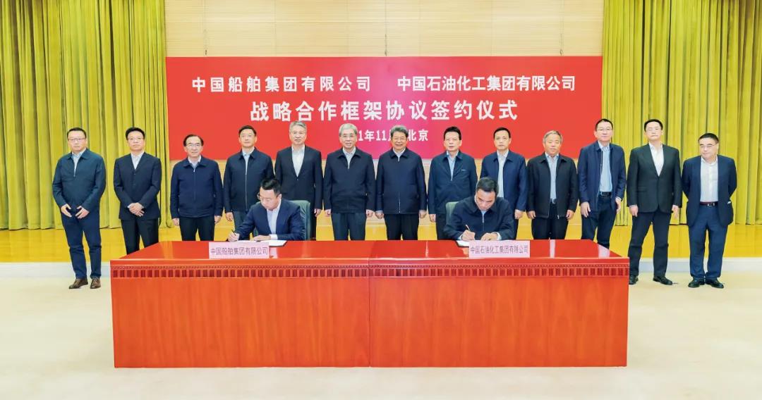 中國船舶集團(tuán)、中國石油化工集團(tuán)有關(guān)部門負(fù)責(zé)人參加簽約活動。