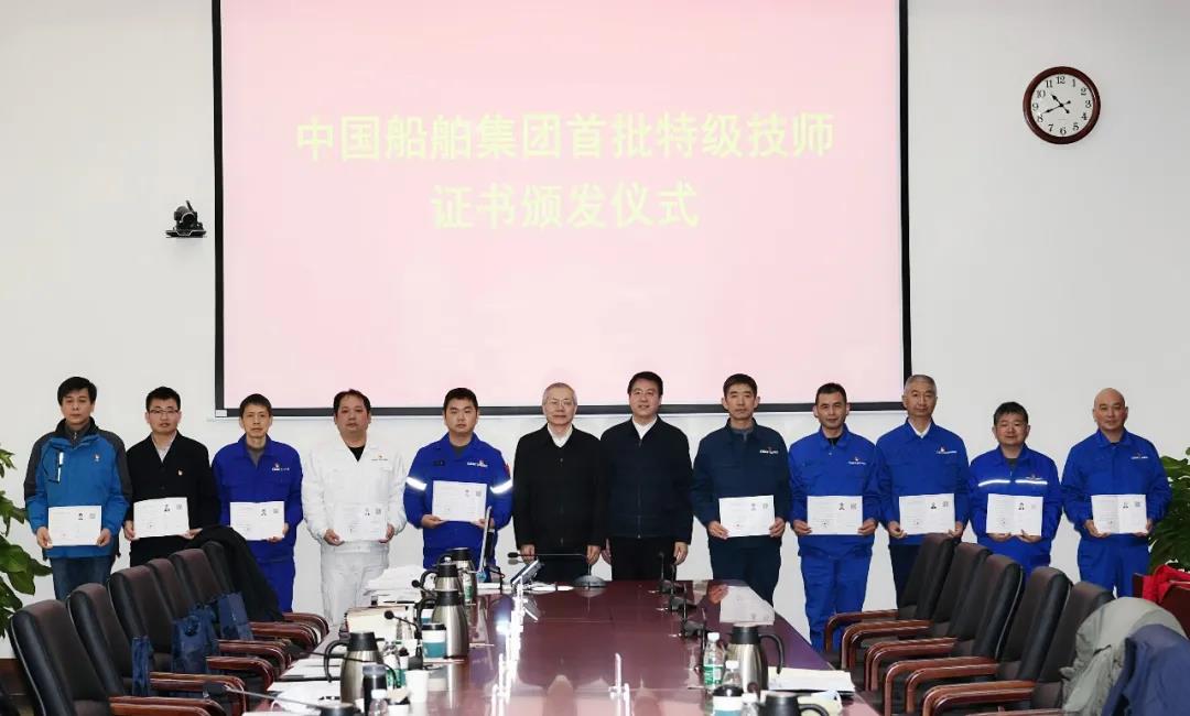 1月14日,人力資源和社會保障部黨組成員、副部長湯濤一行就技能人才隊伍建設(shè)和特級技師認定試點工作到中國船舶集團有限公司開展專題調(diào)研,并與中國船舶集團黨組副書記、董事杜剛共同為集團公司評出的國家首批特級技師代表頒發(fā)證書。