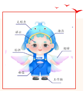 設(shè)計(jì)說(shuō)明:該作品取自《山海經(jīng)》中飛魚——文瑤。相傳文瑤魚出自泰器山,此魚長(zhǎng)著魚的身體,鳥的翅膀,飛翔東天門與西天門之上,遨游在東海和西海之間。文瑤魚乃是吉祥如意的象征,相傳其所到之處風(fēng)調(diào)雨順、五谷豐登,船寶設(shè)計(jì)中加入云紋,如意紋,錢紋寓意中國(guó)造船業(yè),吉祥如意,鵬程萬(wàn)里。海寶以Q版造型生動(dòng)展現(xiàn)了其活潑可愛(ài)、積極熱情服務(wù)大眾的美好形象,以文瑤魚的形式化身造船工匠,體現(xiàn)我們?cè)齑饲笳鎰?wù)實(shí)、攻堅(jiān)克難、開拓創(chuàng)新、拼搏奉獻(xiàn)的精神力量,積極營(yíng)造正能量。