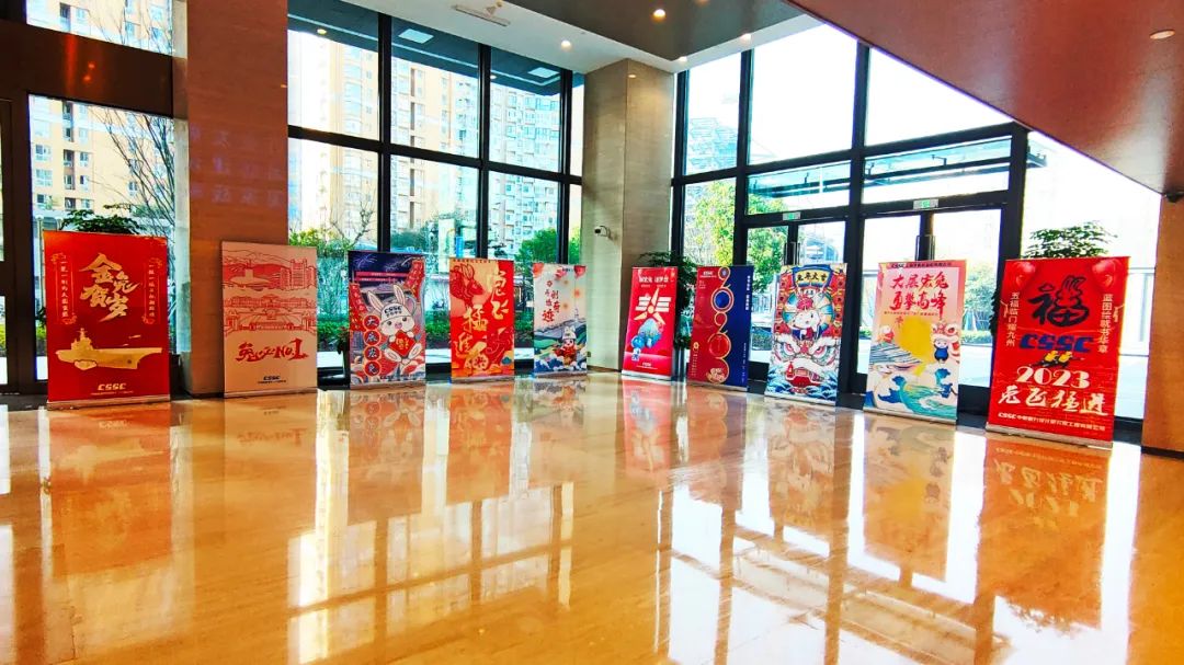 渤海造船的拜年海報以紅色背景為基礎,奠定喜慶祥和的節日氛圍,畫面主體采用中國傳統民間剪紙藝術,將飛騰的瑞兔與破浪的國之重器有機結合,讓我們2023年突飛猛進,大展宏圖!