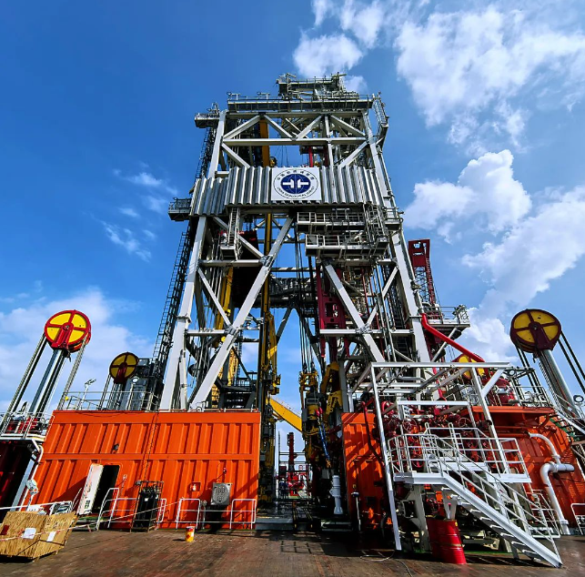 建造團隊仔細論證、推演、執行,整整28輛大卡車的零件,58天完成組裝,實現了輕型非負重井架一次安裝到位,創造了行業內螺栓連接式井架組裝速度的新紀錄,為保證船舶建造周期可控立下了汗馬功勞。