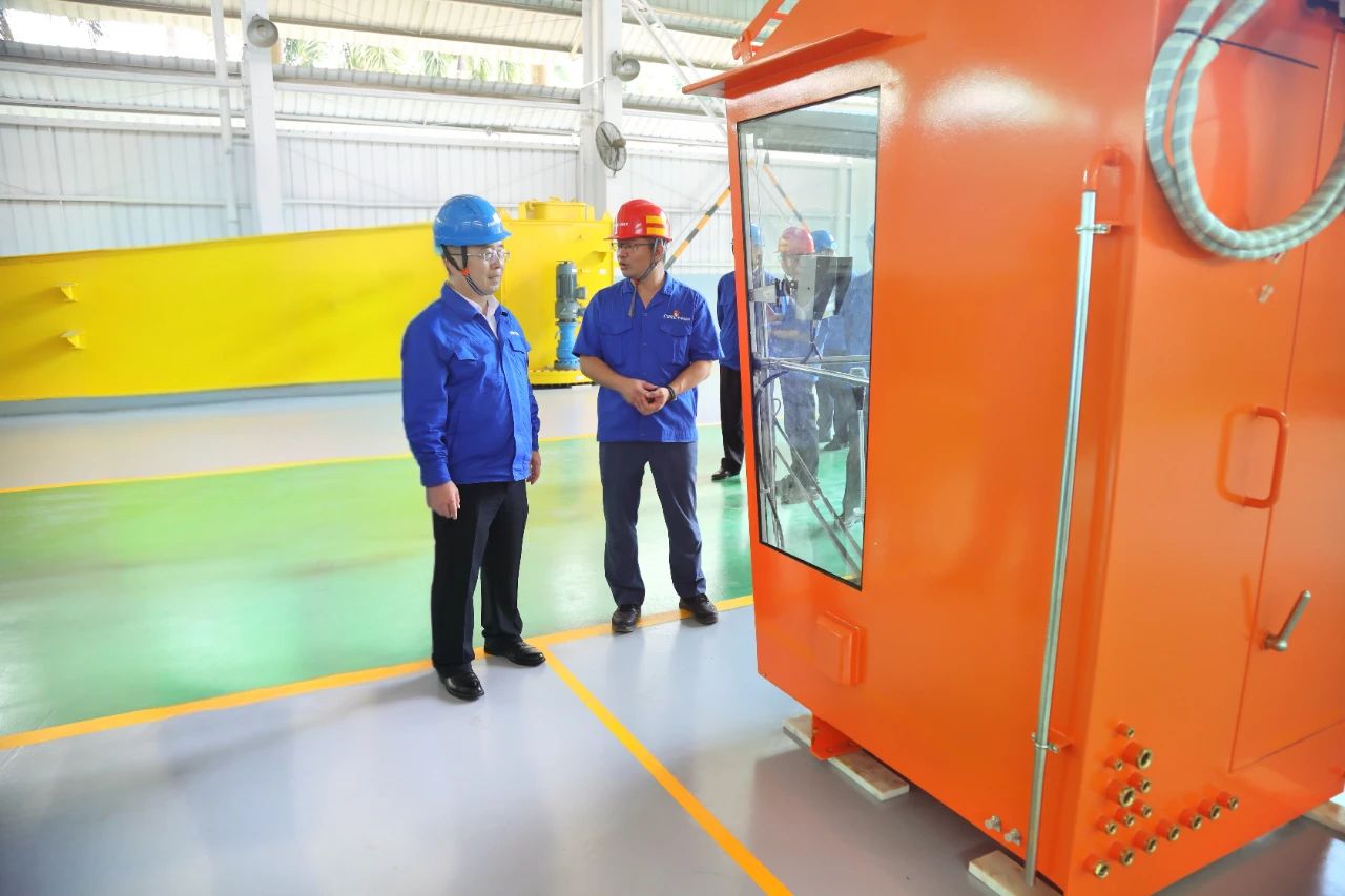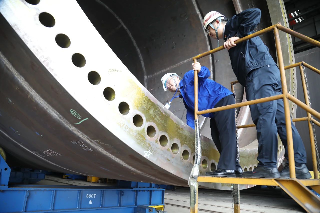 王國強深入浮船塢、碼頭、車間、實驗室科研生產一線,察看并登上相關產品,向使用方了解產品使用感受;深入員工休息區,與一線員工就安全生產、工作環境、健康體檢等情況親切交流;聽取了相關單位總體情況、深化改革、科技創新、人才建設、黨建工作等情況匯報。