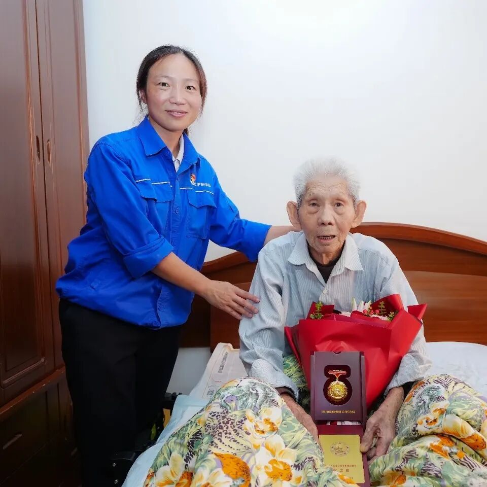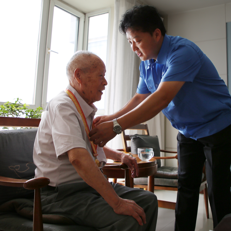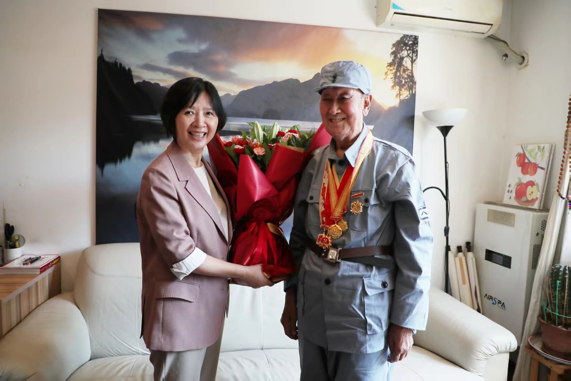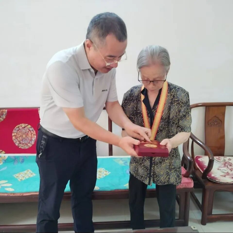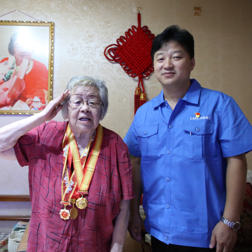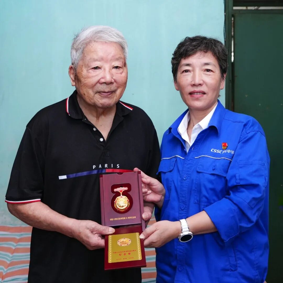 在紀(jì)念中國人民抗日戰(zhàn)爭暨世界反法西斯戰(zhàn)爭勝利80周年之際,中國船舶集團(tuán)有限公司黨組副書記、董事賈海英走訪慰問抗戰(zhàn)老兵焦英杰,頒發(fā)“中國人民抗日戰(zhàn)爭勝利80周年”紀(jì)念章,并代表集團(tuán)公司黨組向他致以崇高敬意和誠摯問候。
