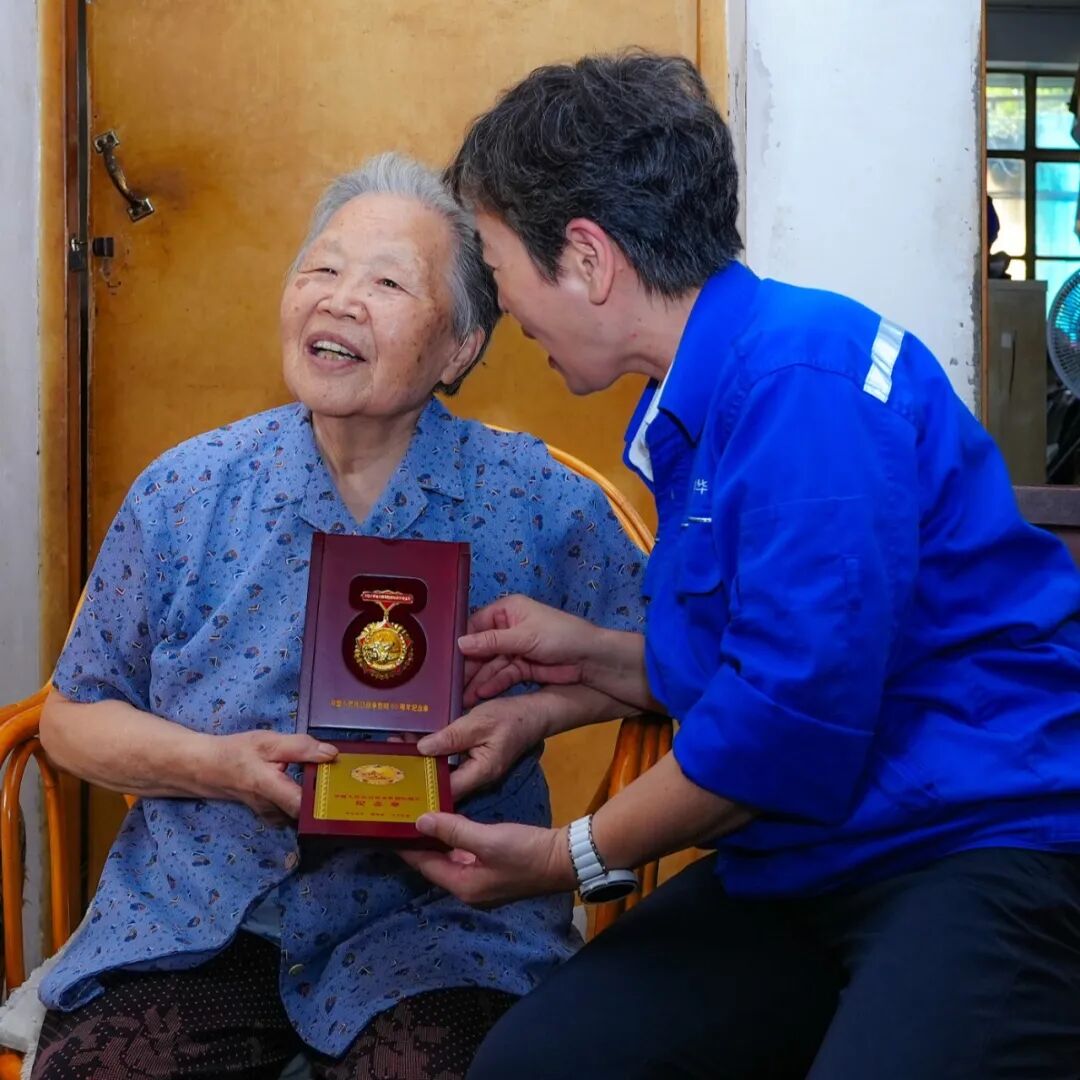 近期,中船集團(tuán)離退休干部局及滬東中華、黃埔文沖、七一〇所、中船河柴、中船風(fēng)帆、昆船公司、中船綠洲、華南船機等單位分別走訪慰問抗戰(zhàn)老兵,轉(zhuǎn)達(dá)組織的關(guān)心和問候,向他們致以崇高敬意和誠摯祝愿,并送上“中國人民抗日戰(zhàn)爭勝利80周年”紀(jì)念章。抗戰(zhàn)勝利80周年紀(jì)念活動前夕,中船集團(tuán)將累計走訪49名抗戰(zhàn)老兵。