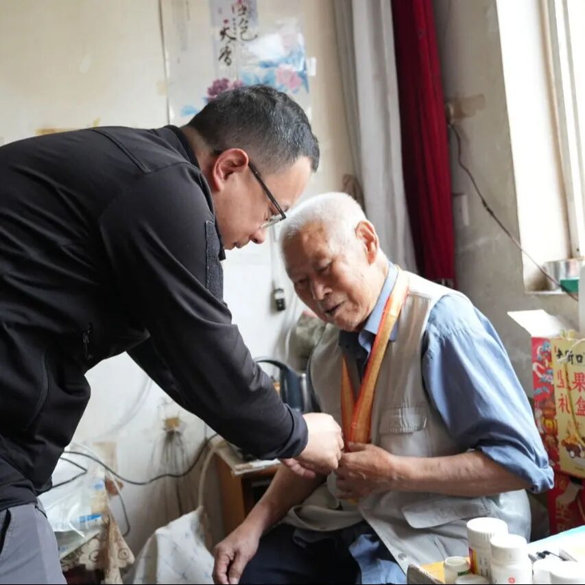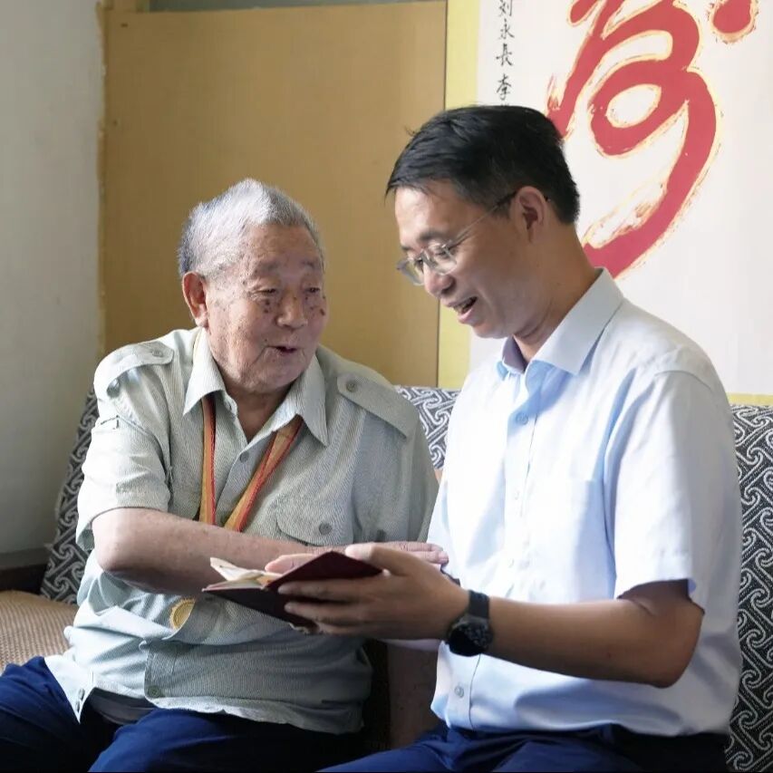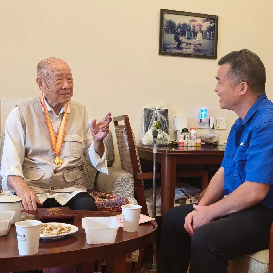 賈海英在焦英杰家中與其促膝交談,悉心詢問他的身體狀況和生活情況,專注聽他講述抗戰(zhàn)時期的崢嶸歲月,頻頻點頭回應(yīng)并追問細(xì)節(jié),衷心地感謝他在抗戰(zhàn)時期作出的巨大犧牲和貢獻(xiàn),并祝愿他身體健康、福壽綿長;同時,叮囑總部各部門及相關(guān)單位要及時關(guān)心、了解抗戰(zhàn)老兵的生活和工作情況,使大家真切感受到集團(tuán)公司黨組的關(guān)懷與溫暖。