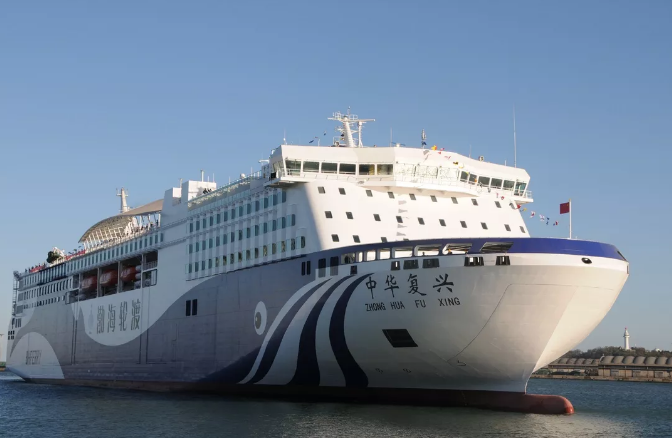 ????由上海船舶研究設(shè)計院設(shè)計的亞洲最大郵輪型豪華客滾船 “中華復(fù)興”號交付使用。該船將投入煙臺至大連航線營運(yùn),單程約7小時,這也是我國第一艘郵輪型豪華客滾船。