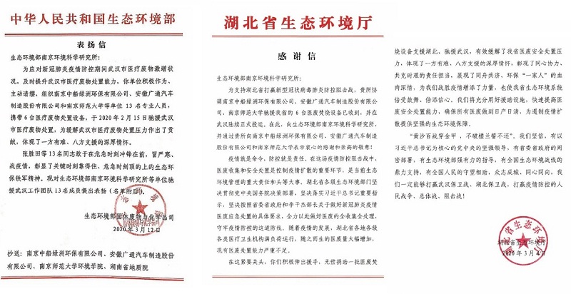 ????近日,國(guó)家生態(tài)環(huán)境部、湖北省生態(tài)環(huán)境廳分別發(fā)出表?yè)P(yáng)信和感謝信,對(duì)中國(guó)船舶集團(tuán)所屬中船綠洲等在疫情防控期間作出貢獻(xiàn)的單位給予高度贊揚(yáng),表示衷心的感謝,并對(duì)包含中船綠洲旗下環(huán)保公司陳紀(jì)賽、陳良義、王小峰、周浩在內(nèi)的13名生態(tài)環(huán)境“鐵軍”提出表?yè)P(yáng)。
