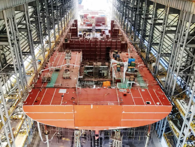 ????相較于露天船臺,室內船臺不僅能改善造船生產環境、提升產品建造質量,還能解決長期困擾生產的雨季問題。