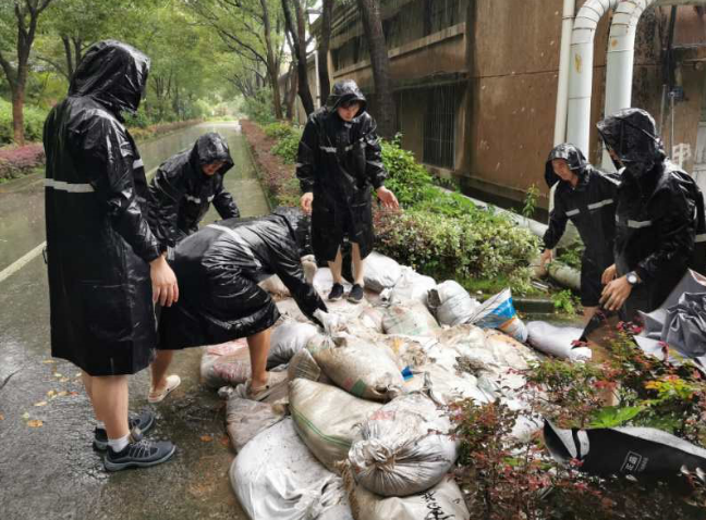 七〇二所及時啟動應急響應,建立各部門汛情排查報告信息網絡,安排現場值守巡查工作;緊急組建應急救援隊,冒著大雨開展全所巡查,查隱患、堵漏洞、搬沙袋、疏管網;積極落實防汛措施,及時關注所辦大樓、地下車庫等重點區域汛情,安排物業、水站、電站人員進行24小時輪值,全力保障沙袋、抽水泵等防汛物資儲備,以及食堂的食材供應,做好雨后消毒工作。