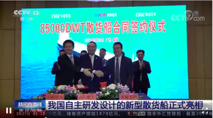 3月26日,中國船舶集團旗下黃埔文沖舉行發布會,正式推出該公司首艘全過程自主設計,并獲得訂單的散貨船85000載重噸(DWT)散貨船船型。