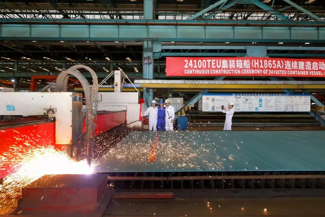 9月22日,滬東中華為地中海航運公司建造的24100TEU集裝箱項目2號船連續建造啟動儀式。