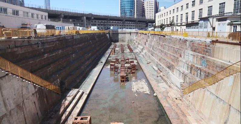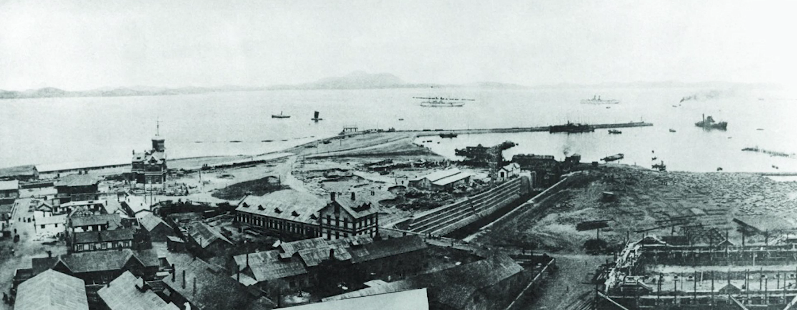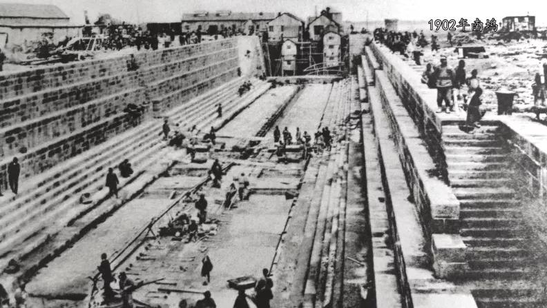 修船南塢始建于1899年,1902年底初建完工,長116米、寬13米、深7.6米,采用兩開式扉門,并配備電動(dòng)排水泵。
