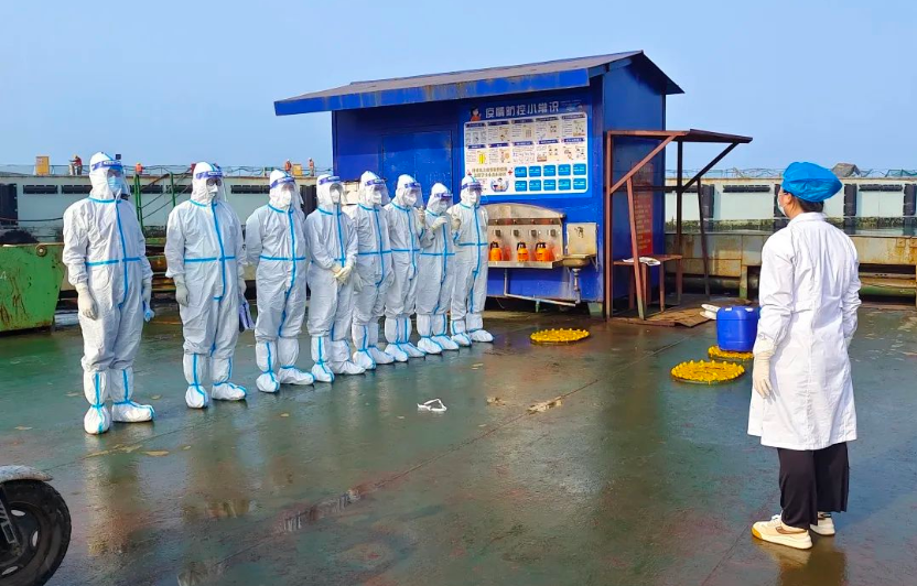 在每一艘船舶即將駛向交付目的地時,中船廣西防疫辦專門組織專業的醫護人員對參與送船的員工進行防護培訓,并開展應急演練,同時要求船舶靠岸時統一穿著防護服,無指令不得上岸。此外,該公司還安排專車對送船員工進行點對點接送,杜絕一切與外界接觸的可能。