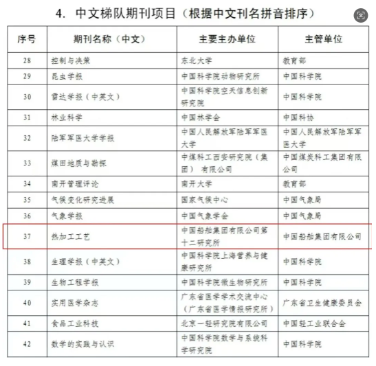 《熱加工工藝》能夠榜上有名,也是中國船舶行業與中國船舶集團為學術研究陣地建設貢獻了強有力的力量。