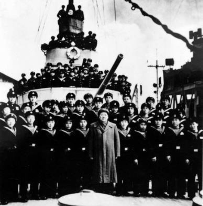 毛主席題詞及與長江艦官兵合影