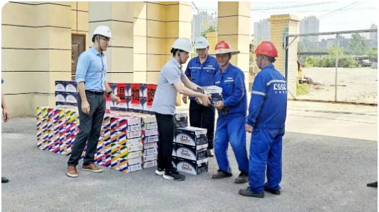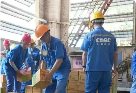 為應對持續高溫天氣,中船物資全面部署防暑降溫工作,切實保障一線員工健康安全。下屬各子公司嚴格落實安全生產責任,組織專項安全檢查,強化作業現場安全管理;結合不同崗位作業強度,科學制定防暑降溫方案,并通過安全教育提升員工應急處置能力。同時,積極開展“關愛員工送清涼”慰問活動,為一線員工發放藿香正氣水、清涼飲料等防暑物資,并升級改造員工休息室,改善高溫作業環境。