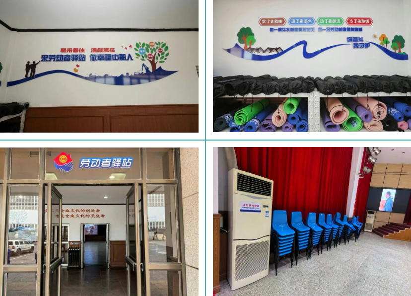 這個約300平方米的會議室共享空間內,可滿足休息、補水、應急等多重需求。空調定時運轉,保持著舒適的溫度;直飲機冷熱水方便打取;窗臺上擺放著急救藥箱,里面備有藿香正氣水、創可貼、速效救心丸等藥品;架子上的躺墊干凈整潔,可供短暫休憩;手機充電電源,解決戶外勞動者“電量焦慮”問題;架子上整齊擺放的愛心傘,為工友提供愛心雨具;設置“叫醒服務”的起床鬧鈴,為大家按時起工提供了更好保障。此外,該公司還在生產現場增設了3個小型驛站,配備小藥箱、血壓計、AED等設備,兼具健康小屋功能,實現重點區域全覆蓋。同時,建立定期巡查維護機制,確保各項設施正常運轉,并根據使用者反饋不斷優化服務內容。