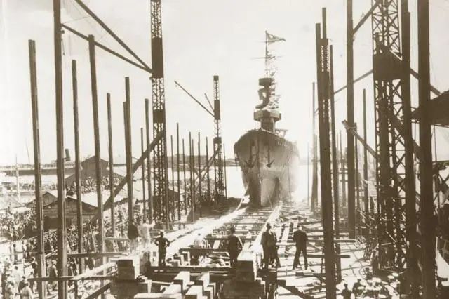 1928年8月16日午后,從上海老城廂西門通向江南造船的道路上,四處懸旗結彩。沿路張貼著“‘咸寧’下水是國民政府海軍的新建設”“鞏固海防、恢復海權”等標語。在江南造船廠區(qū)內臨江的一處船臺上,咸寧艦已經完工,靜靜地等待著下水的莊嚴一刻。這是江南造船為南京國民政府定制的第一艘軍艦。