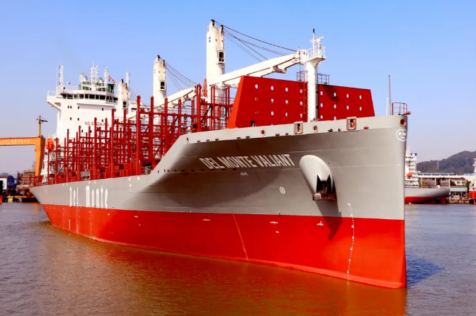 當日下午交付的“DEL MONTE VALIANT”號,是黃埔文沖為美國DEL MONTE 公司建造的600FEU全冷箱集裝箱5號船。