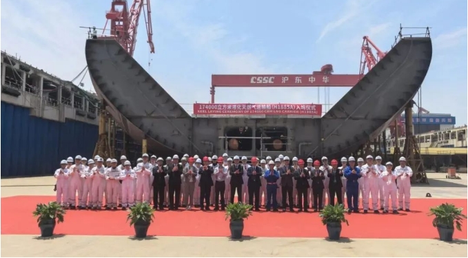 17.4萬立方米LNG運(yùn)輸船“遠(yuǎn)海奮進(jìn)”號(hào)(Ocean Inspiration)在滬東中華新廠區(qū)正式命名。