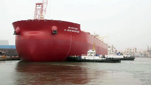 ????最近,中國船舶集團各單位復工復產消息屢屢登上各大央媒。今天上午,央視《朝聞天下》又詳細報道了中國船舶集團旗下大船集團為韓國SK海運公司建造的新一代32.5萬噸超大型礦砂船“鐵山”號交付的消息。