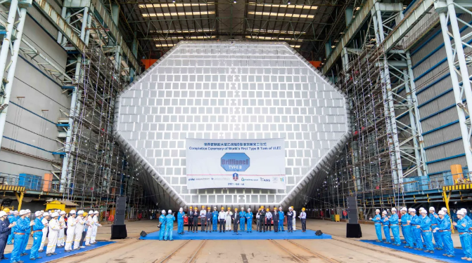 日前,全球最大B型菱形液貨艙在江南造船完工,將被用于世界首制99000立方米超大型液化乙烷運輸船(VLEC)。江南造船自主研發的B型艙 若配置不同的艙體材料和絕緣系統 ,可適用于裝載不同溫度的液化氣貨品。