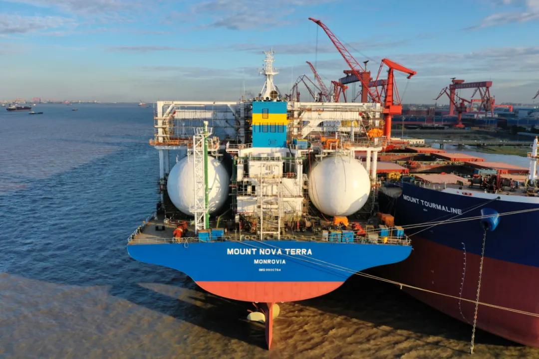 1月28日,中國(guó)船舶集團(tuán)旗下外高橋造船自主研發(fā),攜手中船貿(mào)易,為新加坡EPS公司建造的全球首艘液化天然氣(LNG)雙燃料動(dòng)力20.9萬(wàn)載重噸紐卡斯?fàn)栃蜕⒇洿?