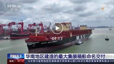 7月24日,由中國船舶集團(tuán)旗下廣船國際聯(lián)合中船貿(mào)易建造的16000TEU集裝箱船1號船命名交付,中央電視臺《朝聞天下》進(jìn)行了報(bào)道。