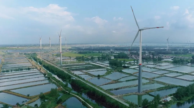 在華北平原的田埂上,一臺臺由鋼混塔筒搭載的風電機組不僅發出綠電,白色的大風車還點綴其中,與農田相映成趣,勾勒出一派鄉村美景,成為鄉村旅游的網紅打卡地。